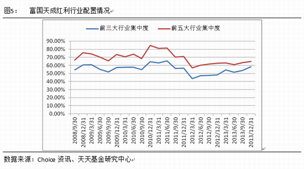 2013年四季度富国天成红利十大重仓股更换5只股票,新进了卫宁软件、中国船舶、中航电子、百视通、东方雨虹,换出了康得新、中兴通讯、科伦药业、新湖中宝、东阿阿胶。从业绩贡献看,新进入十大重仓股的卫宁软件、中国船舶和中航电子表现出色,三只个股均逆市上涨超过20%,而换出的五只个股在四季度均下跌。