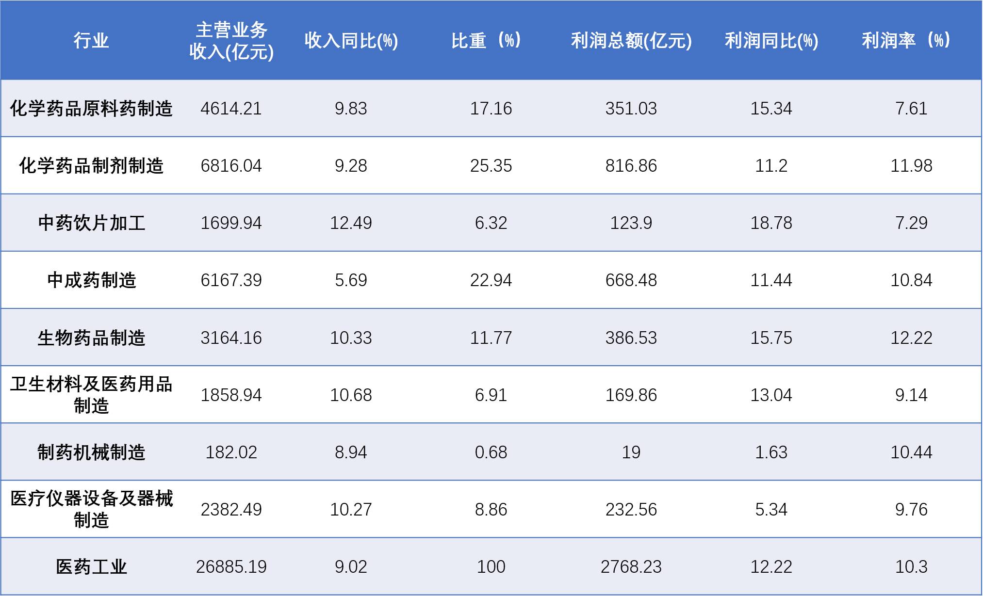 表1:2015年医药各子行业收入和利润
