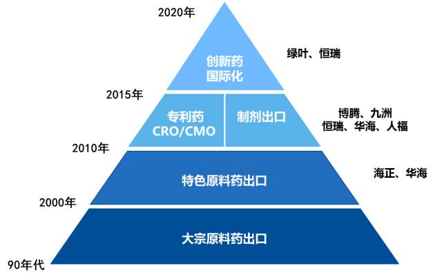 大宗原料药等低附加值产品长期占据我国医药出口的半壁江山,近年来,产能过剩、环保压力等因素导致出口动力不断减弱,国内医药企业开始从传统原料药、中间体向制剂、创新药等高端产品延伸。2015年,制剂国际高端市场认证增多,目前国内已通过欧美质量体系认证的制剂企业约50余家。制剂出口成为部分药企的重要增长点,恒瑞医药、华海药业向欧美市场出口的制剂单品种年销售额超过1亿美元。创新药国际化实现突破,恒瑞医药将研发的PD-1单抗药物的国外权益转让给美国Incyte公司,开创了中国制药企业创新生物药品技术的出口的先河。未来会有更多的药企转型加入国际化大军,下一步制剂出口将会成为推进医药外贸增长的重要动力,中国医药产业已迎来自己的“工程师红利”时代。