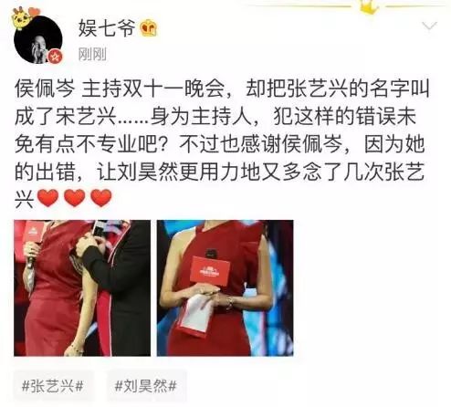 侯佩岑把“张艺兴”的名字错念成了“宋艺兴”