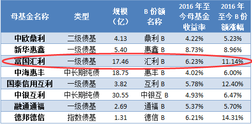 富二把目前市场上部分今年以来母基金收益超过4%的分级债基罗列一下。