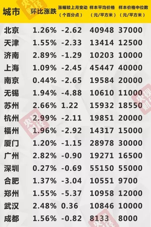 表2:2016年10月热点城市新建住宅样本平均价格指数