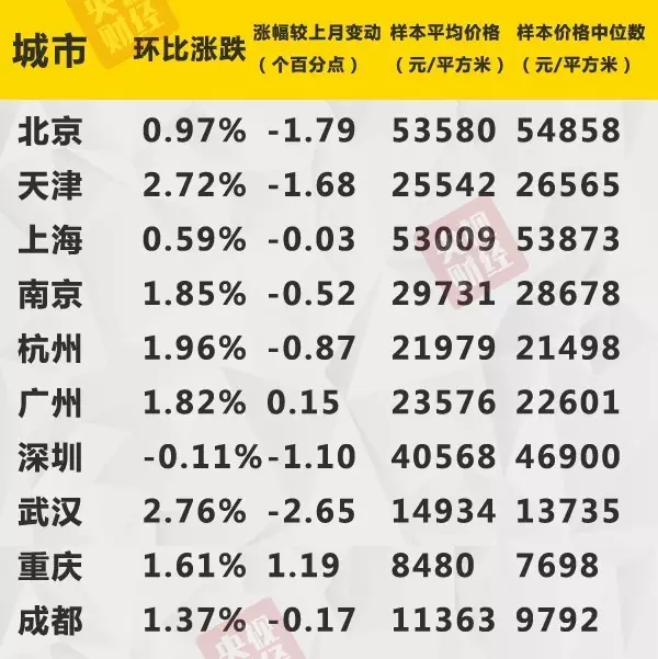 表3:2016年10月十大城市主城区二手住宅样本平均价格指数