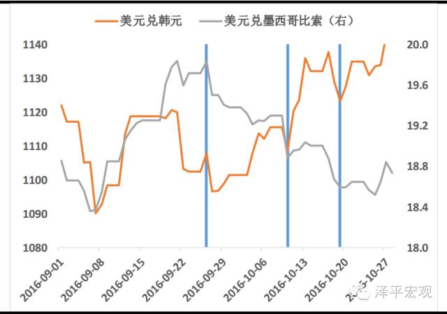 希拉里上台预示美联储货币政策收紧会低于预期,同时执政初期政策的稳定性也有利于资本市场,利多美国股市。不确定性风险下降,市场避险情绪也逐渐消退,利空黄金价格。希拉里对外贸易的开放态度会带动新兴市场国家,特别是与美国贸易依存程度非常高的国家(如墨西哥)的货币汇率的修复。随着基建投资的拉动,美国经济缓慢复苏,美元指数整体应该是缓慢走强的趋势。
