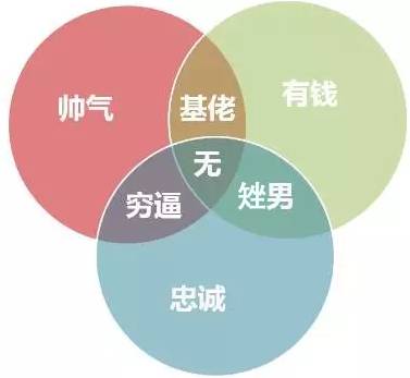 比如你找男朋友,要同时满足“帅气”“有钱”“忠诚”这三个条件是无法实现的。