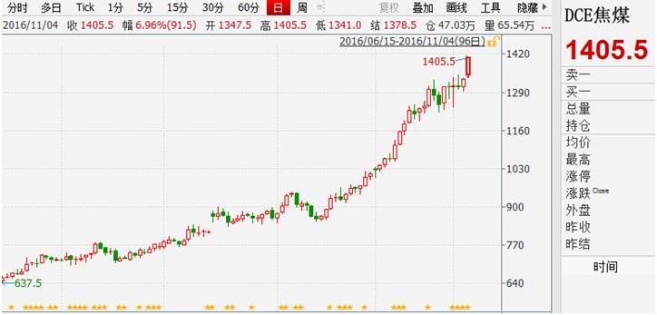 火红蜡烛拾级而上,再对比今年跌宕起伏的A股市场,焦煤、焦炭、动力煤显然都已经成为众生仰望的人生赢家。
