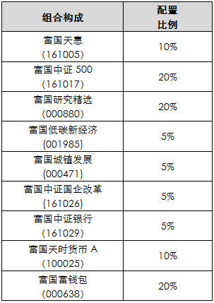 我们的最新推荐为“20%中证500+20%研究精选+10%天惠+5%中证银行+5%中证国企改革+5%低碳新经济+5%城镇发展+20%富钱包+10%天时”。