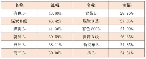 既然板块表现极佳,那市场冲锋号分级B的表现自然不会差。流动性较好的分级B中,除了经历下折的分级B“面色不佳”,其他分级B均体现了杠杆的魅力。煤炭、有色类分级B涨幅已突破40%,新能车B的涨幅也在25%左右。没错,我就是分级B,我为暴涨代言!