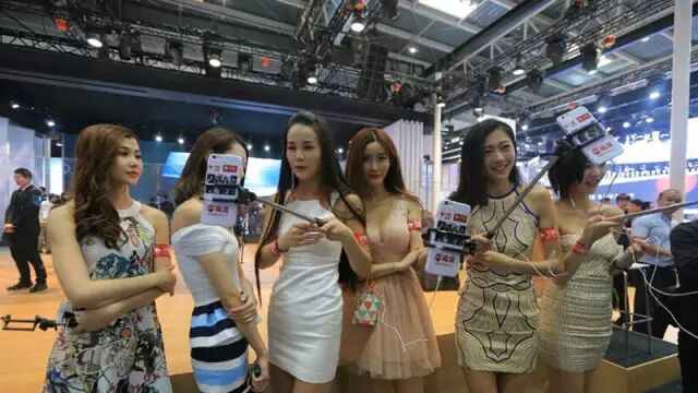 ▲4月25日北京车展上,数名自称某网站主播的女子,化着浓妆,身着超短裙,依靠在豪车上,摆出各种妩媚的造型,豪车展台工作人员劝阻: “请不要趴在车上”。