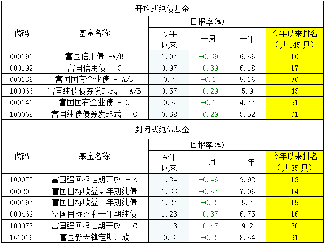 还是来说说看富国旗下债基的表现吧,数据来看,大多数排名前1/4,在债券指数连挫的情况下,虽然债基净值出现了小幅下滑,但是今年以来依然是赚钱的。