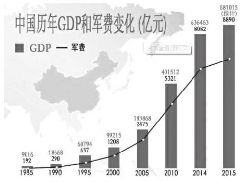 国家财政支出中的国防开支金额由每年2475亿元迅速提高至8890 亿元,