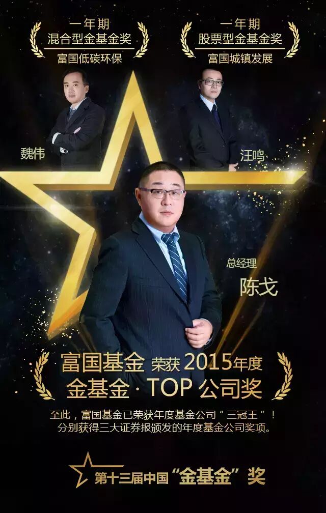 但奖多不压身,斩获晨星、金牛之后,2016年的富二势如破竹,又拿下了三座重量型奖杯。2016年5月10日,《上海证券报》主办的第十三届中国“金基金”奖颁奖典礼在陆家嘴举行,富二家荣耀加冕,获得了“2015年度金基金·TOP公司奖”殊荣及三项大奖。