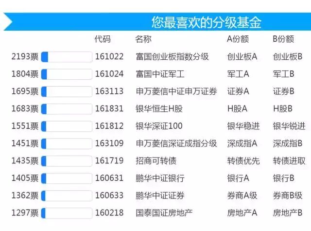 前段时间,“集思录”网站发起了一场民间投票——2016投资者最爱分级基金评选活动,级掌柜家有创业分级、军工分级两只基金入选。