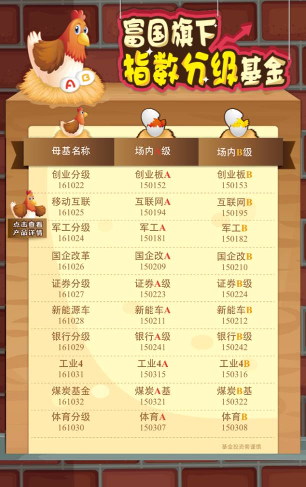 当然,这份大奖给予的荣耀还不止这些。在翻看了投票贴下的数百条评论后,级掌柜还看到了这样的留言:不少分级铁粉已经在为同样出色富国旗下其他分级的未上榜而感到惋惜,级掌柜私以为这些分级基金如若名在榜上,一定也能取得不错的成绩。因为国企改革(161026)和军工分级(161024)一样,都曾经都创下了市场之最的规模神话。在分级基金发展壮大的大潮中,两者亦是相关主题的先行军。级掌柜现在犹记得国企改B连续十几个交易日上涨的壮观景象,还有军工B牛市中率先触发上折时的辉煌过往!而新能源车(161028)和工业4(161031)现在依然是分级市场的创新和唯一,并且近期市场表现再一次用数据表明,这种创新方向确实能让客官们取得超额收益。据级掌柜统计,自2016年3月1日以来,新能车B涨幅已经达到54%,超越了绝大多数分级B!而工业4B更是时时沐浴政策春风,近期连续的领涨让级掌柜期待它的后续爆发。当然,还有今年以来风头最劲的煤炭基金(161032)、唯一存在且迎来元年的体育分级(161030)、因互联网+而爆发的移动互联(161025)、牛市之王证券分级(161027)、抗跌强者银行分级(161029)等等。这十只分级基金共同构建了热门概念全覆盖、紧随潮流自带smart贝塔的富国分级体系,并令富国在数量不占优的情况下还稳居分级基金第一大厂的位置,足见富国分级的魅力!数据来源:Wind资讯 截止日期:2016-5-26今日捧起这份大奖,是我们的至高荣耀,日后我们必将秉承着“做稳健的、靠谱的、令人放心安心资产管理公司”的初心继续前行,并一直陪伴客官们左右。