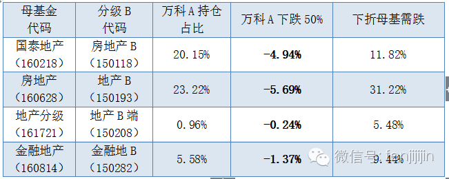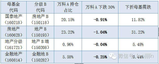 表:万科A连吃3个跌停板对相关分级净值影响表