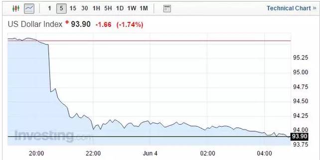 上周五晚,本是一个风平浪静的周末夜晚,国际市场却突然炸开了锅,最直观的是美元指数大幅回落,跌出了壮观的瀑布走势……