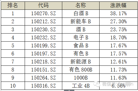 相关分级B更是乘风扶摇直上,白酒B(150270)上涨38%,位居第一;