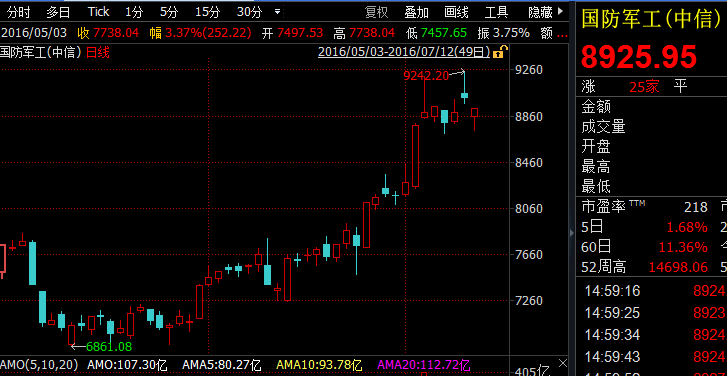 经过上半年的积累和调整,军工板块的基本面向好,加上南海问题等外部导火索的催化,军工股大涨,临近事件裁决日,军工股又出现了回调,投资者也显露出“卖事实”的倾向: