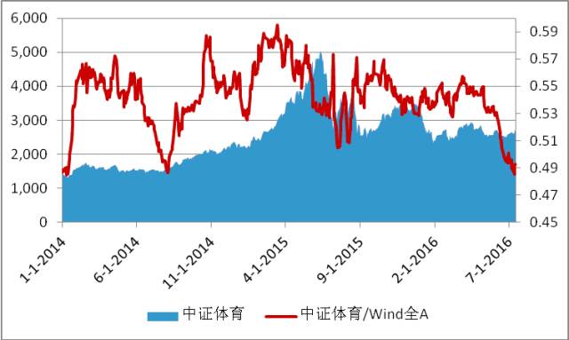 A股层面:体育板块虽炙手可热,但近期相对大盘走势却急转直下,光景几近牛市前的2014年初和8月。再结合近期大盘的特点:板块轮动明显、资金轮番炒作,相对来说体育在这波行情中还在山脚下,所以资金也很有可能将这类滞涨板块作为下一目标。