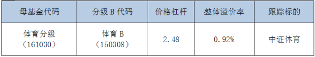 今天体育分级(161030)一度出现1.3%的整体溢价,截至尾盘,其整体溢价率仍近1%。富二以为,在较高整体溢价率的影响下,看好体育板块的客官可通过申购体育分级(161030)、分拆后卖出体育A(150307)的方式便宜得到体育B(150308)。