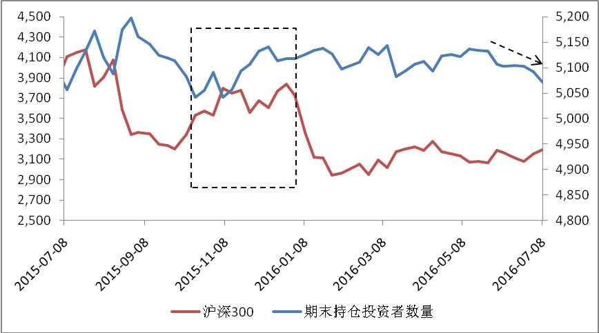 图:期末持仓投资者数量与沪深300对比图