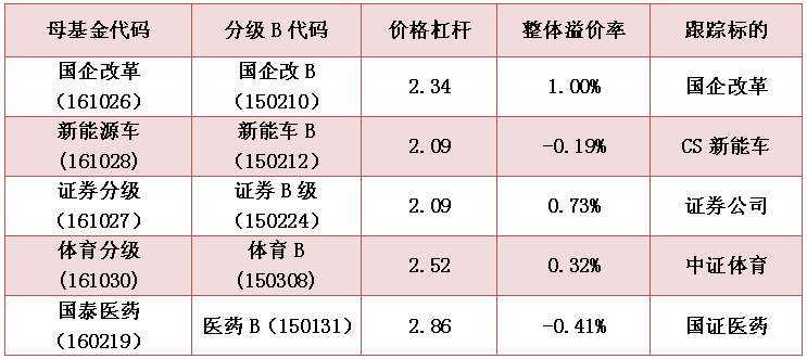 表:利好分级基金一览