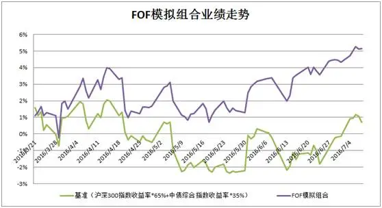 1、从绝对收益来看,在指数和个股表现略有背离的结构化行情里,上周FOF模拟组合小幅上涨0.68%,略低于基准收益。自推出以来,FOF模拟组合获得5.87%的正收益,相较于上证综指和创业板指的超额收益分别为2.51%、1.93%。我们的FOF组合以绝对收益为目标,权益仓位为0-95%,可参考市场上的灵活配置型基金的基准作为比较,与同期基准(沪深300指数收益率*65%+中债综合指数收益率*35%)相比的超额收益为3.41%。