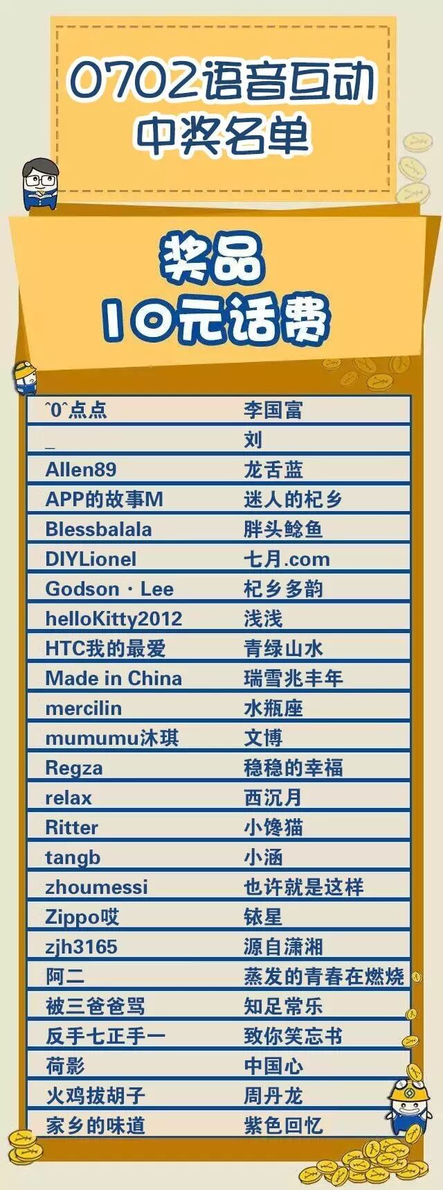 所有中奖的话费将于7月8日(本周五)前充值到中奖客官的手机账户中,请客官们耐心等待~