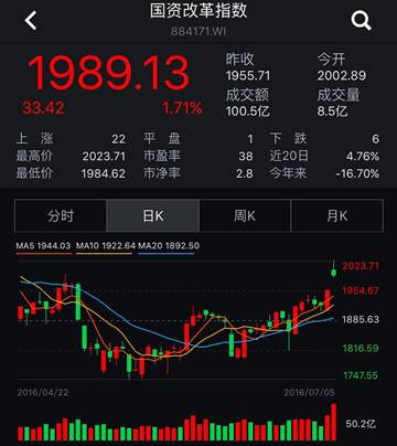当然,政策对国企改革主题指数——国资改革指数有明显的正效应,今天股市开盘以后,国资改革概念板块高开、以2.40%左右的涨幅居各概念板块前列。虽然截至收盘涨幅收窄至1.71%,但相比于前一日也有不少起色。