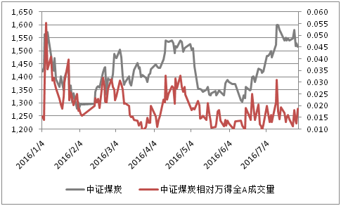 图:中证煤炭相对WIND全A成交量