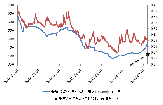 图:煤炭价格与煤炭板块超额收益走势图