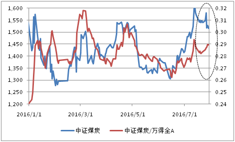 图:中证煤炭相对大盘走势