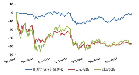 对普通投资者而言,参与港股市场仍有一定的障碍,购买相关基金类产品是比较好的投资渠道。富国基金在2015年6月24日推出了富国沪港深价值优选基金。基金的成立日期恰好遇上A股去年牛市的高点,之后A股市场出现了大幅度的调整。
