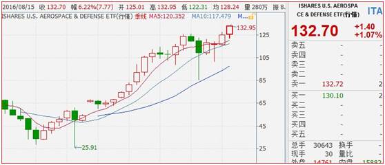 它的名字叫iShares U.S. Aerospace & Defense ETF,可以翻译为:iShares美国航天防御ETF基金,iShares是黑石旗下的专门出品ETF的公司。