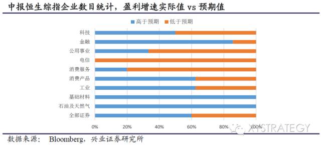 ——(2)微观层面,中报业绩或好于预期。以目前已披露中报的上市公司来看,恒生综指成分股中有60%公司盈利高于预期,整体营收和盈利分别超预期1.3%和 12.5%。
