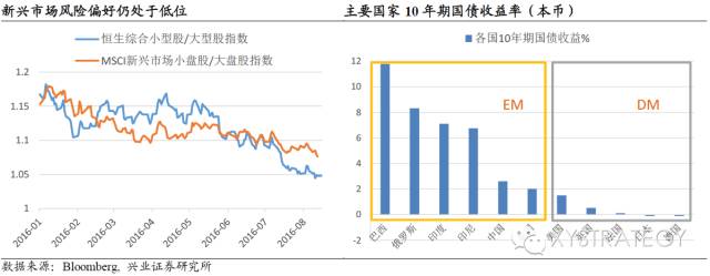 ——其背后的逻辑是在全球过剩资金寻找收益的背景下,考虑到主要发达国家的股市估值处于历史偏高水平和主权债收益率迈向负利率时代,新兴市场成为性价比更高的选择和提供正收益之地。寻找收益的思路也反映在行业配置上,在风险偏好不高的情况下,资金更青睐于金融等“类债券”大盘股,在价值股中找洼地。