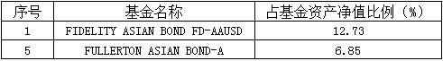 上面表格是富国全球债(100050)二季度的季报,这是一只FOF,其持有最多的前是产品中,排名第一的是富达亚洲债基。第五的也是一只亚洲债基。
