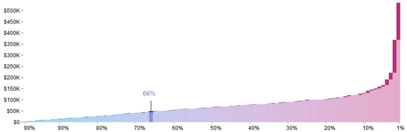 美国非著名“可视化数据报导记者”Andrew Van Dam今年年初做了一个在线调查,让身在美国以外/有移民美国倾向的人来看看自己的收入水平在美国能排进什么位置。