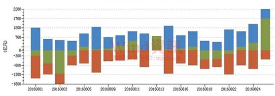 消息3:央行8月24日召集主要大型银行开会,讨论有关流动性管理问题,要求大行合理搭配资金的融出期限。央行在会上并表示,如果到期后的14天期逆回购需求不佳,不排除继续推出更长期限的逆回购,以引导市场。另外,中国央行还敦促银行增加贷款的年期。