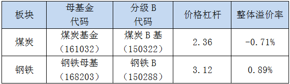 因此从这些角度来说,煤炭、钢铁客官们可继续重点关注,相关流动性较好的分级基金级掌柜已列出,客官们可按需选择。