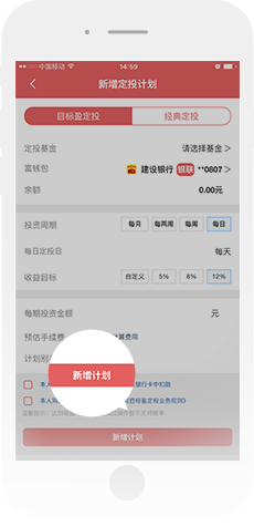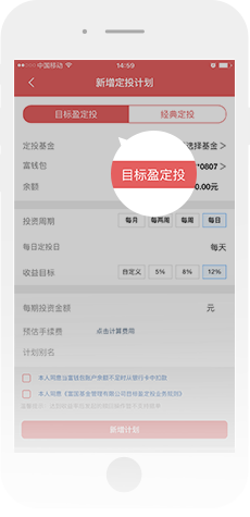 5.设定投资周期、每月定投日、止盈目标及每期金额