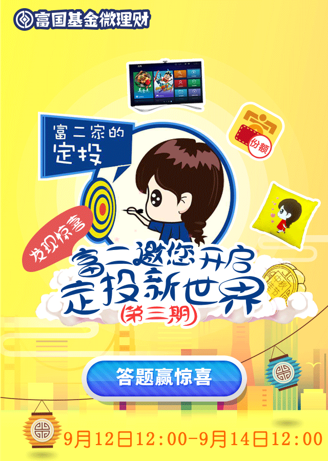 ❷ 5~166元随机富钱包份额,获得第一期活动红包奖励的客官可在富国基金微理财回复“定投钱包+手机号”,如:定投钱包+18888888888。富钱包份额将在9月23日前发放到客官填写的手机号对应的富国基金直销账户中;