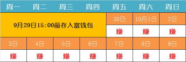 今天(9月29日)15:00前存入富钱包