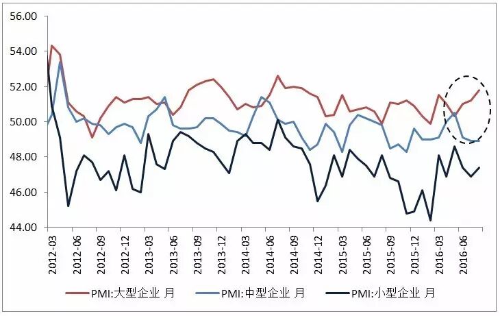 、而小型企业7月才表现出PMI上行,但幅度依旧不及大型企业。