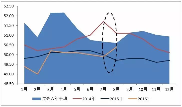 还有客官认为,这次PMI的大幅好于预期主要受季节因素影响,长期来看并无大幅改善的可能。但级掌柜通过对比过去六年PMI各月走势,发现7—8月PMI都呈现下跌势头,仅有今年有了一个不小的抬升。