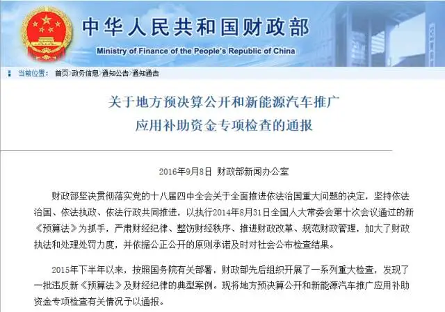 通报说的是财政部在今年年初对90家新能源汽车生产企业发起核查,结果出来了,发现有企业(果不其然)违法违规骗补,并曝光了5家骗补的车企,都是客车企业,分别是:苏州吉姆西客车制造有限公司、金龙联合汽车工业(苏州)有限公司、深圳市五洲龙汽车有限公司、奇瑞万达贵州客车股份有限公司,以及河南少林客车股份有限公司……