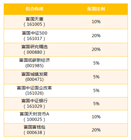 我们的最新推荐为“20%中证500+20%研究精选+10%天惠+5%中证银行+5%中证国企改革+5%低碳新经济+5%城镇发展 +20%富钱包+10%天时”。
