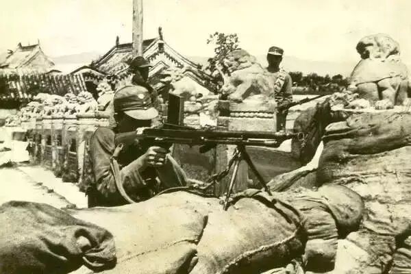 七七事变时在卢沟桥头防御工事内的中国士兵