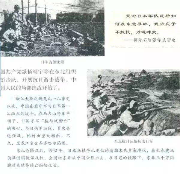 中国历史教科书八年级·上册(人教版)“九一八事变”章节