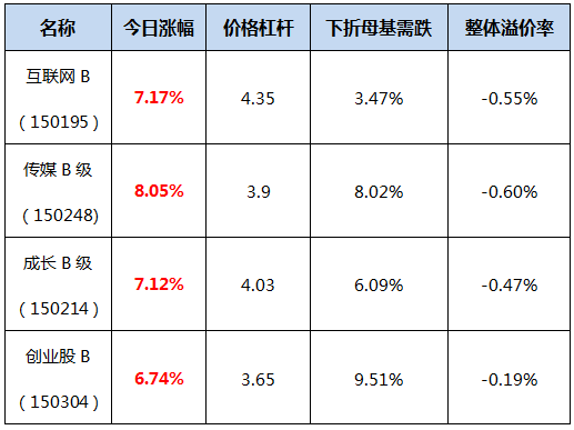 但级掌柜还是需要提醒的是,互联网B(150195)当前距离下折仅有3.47%的距离,所以如果后续市场情绪不佳,还是有触发下折的可能,客官们切勿盲目抄底。不过幸好当前互联网B仍旧整体折价,意味着其交易价格并未被高估,所以如果您选择买入,亦只需承担指数下跌的风险。